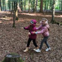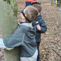 -Waldgegenstände durch Fühlen zu erraten (Mika, Tristan).