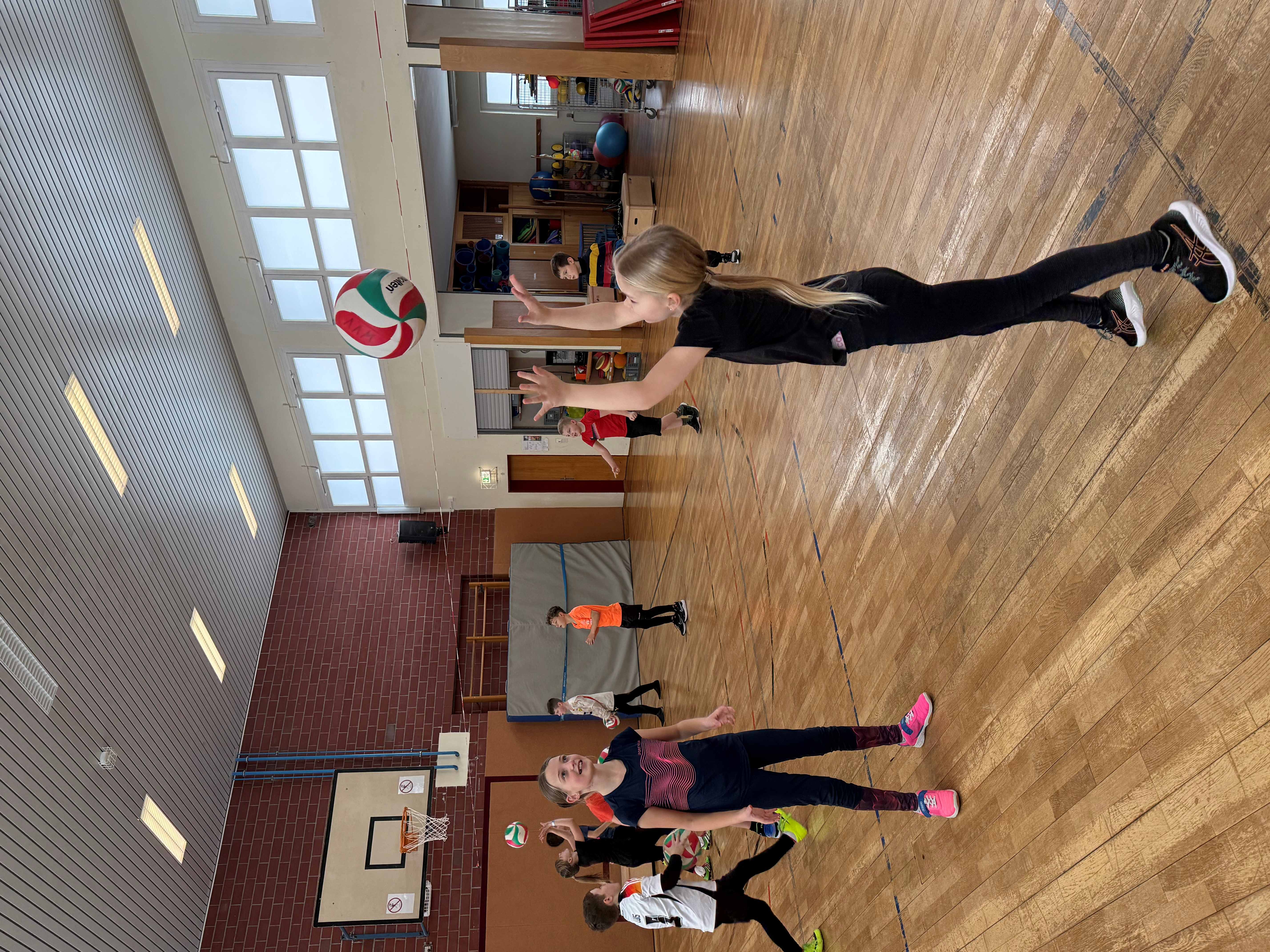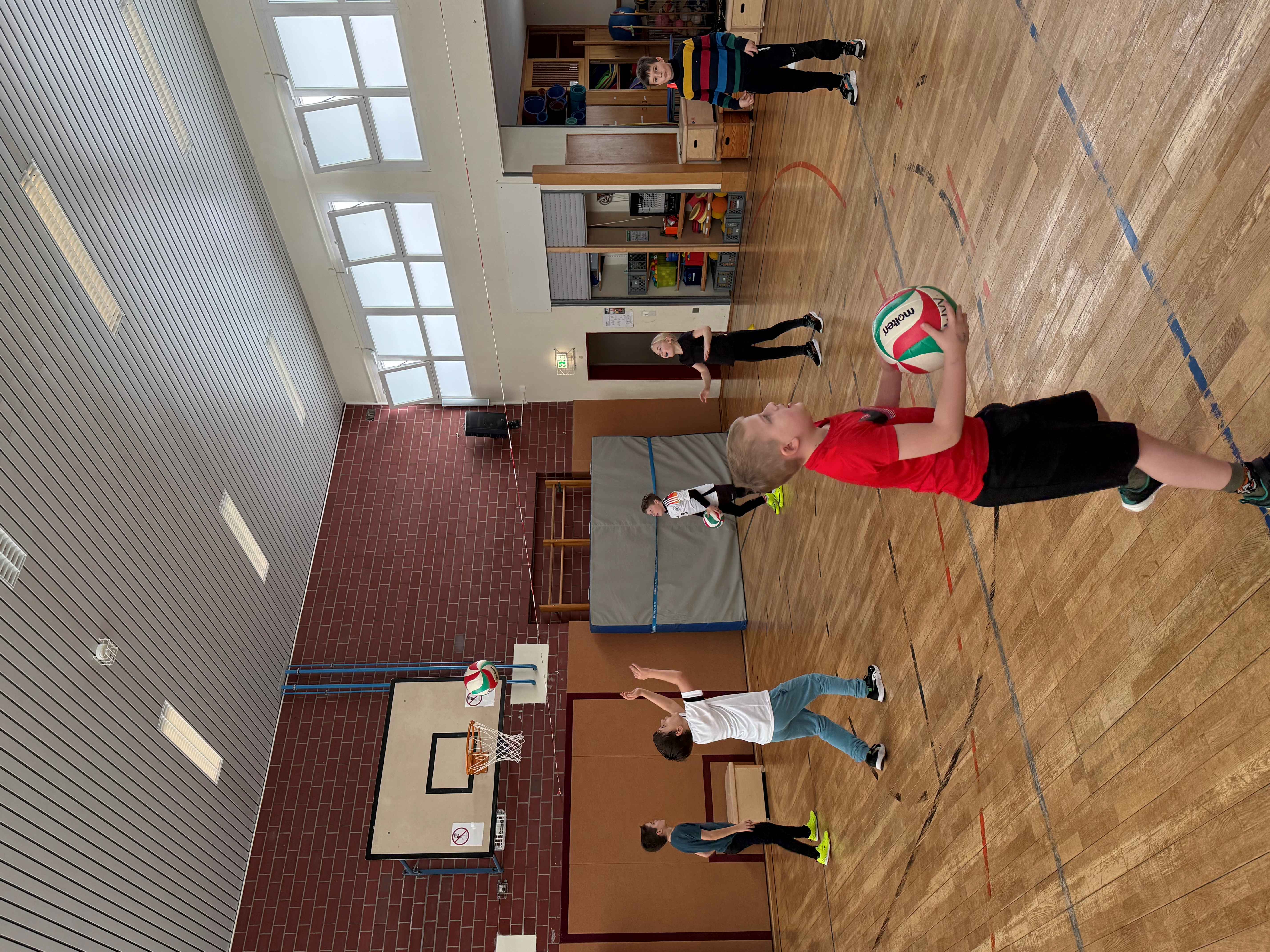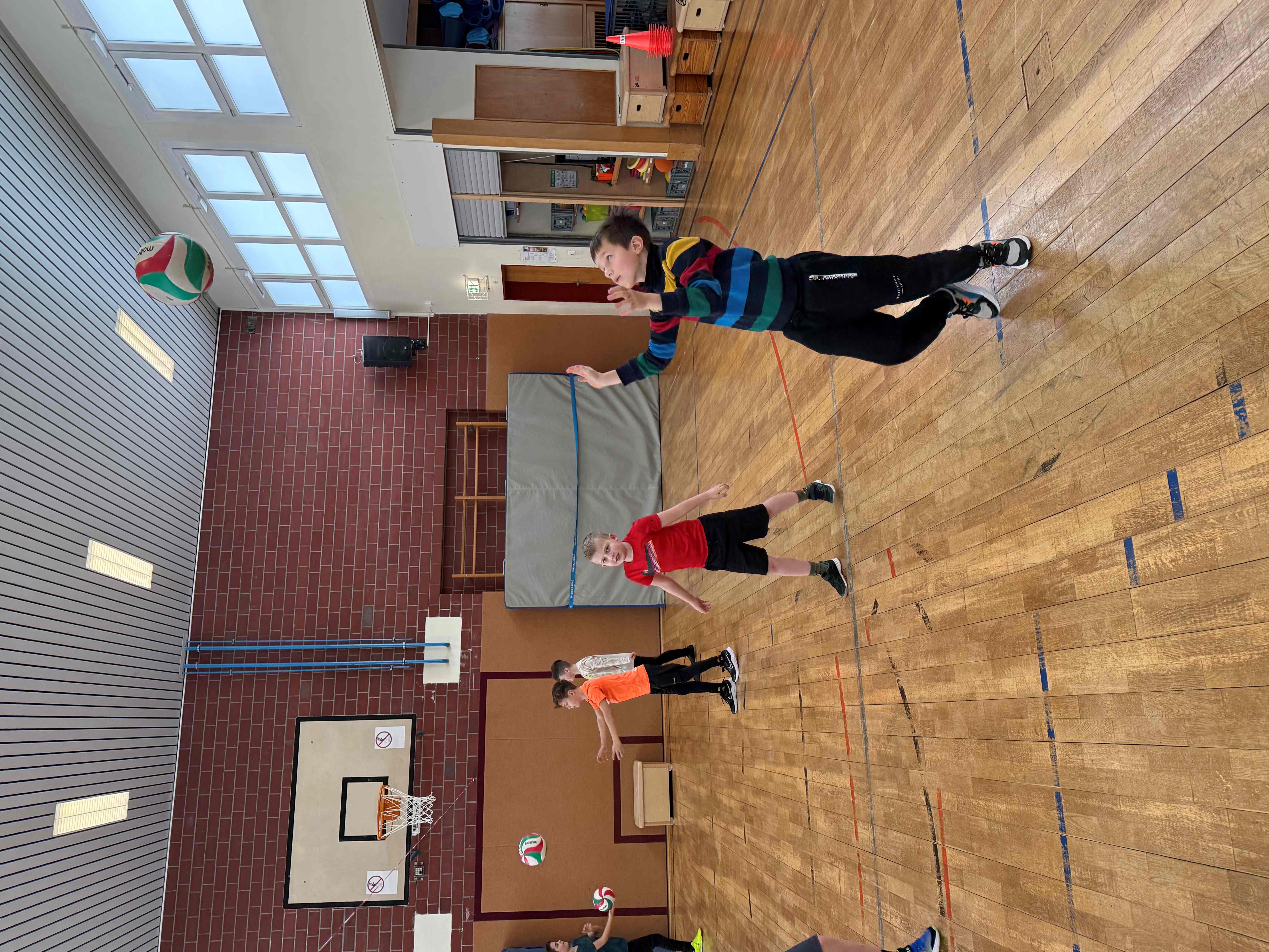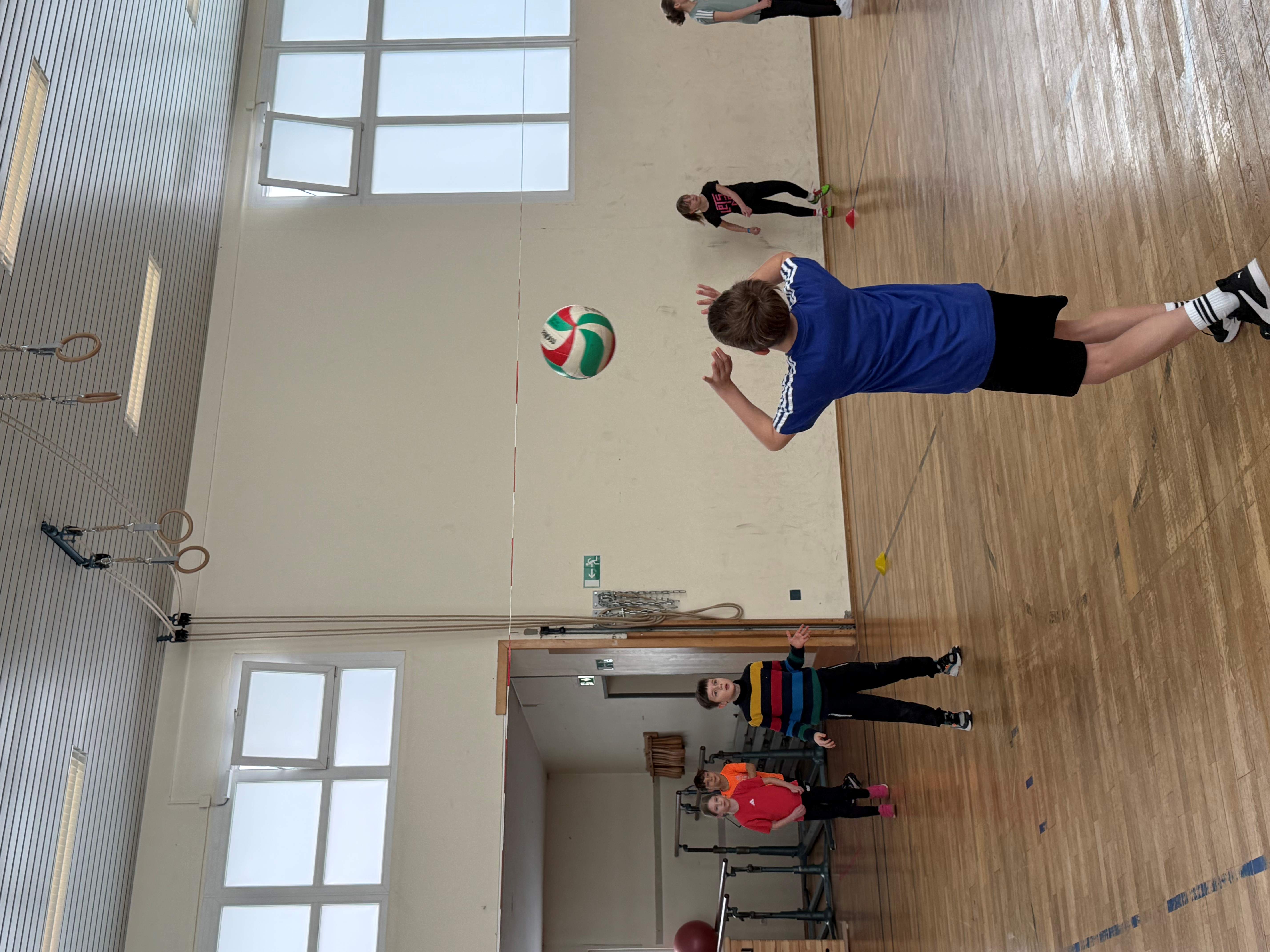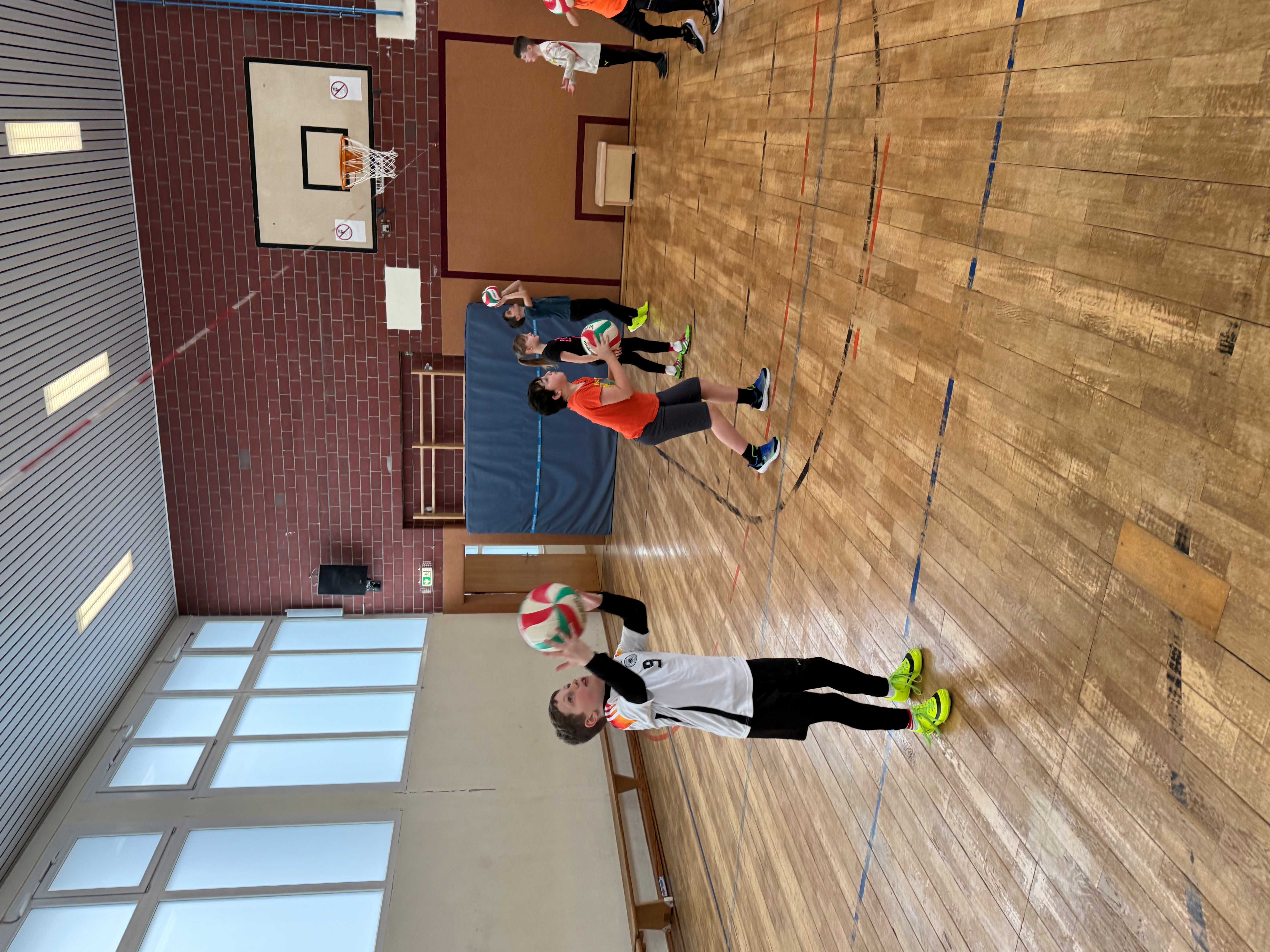 Wie bereits seit vielen Jahren üblich, bekamen alle Klassen des 4. Jahrgangs Besuch von Bernd Purzner, der als Vertreter des WVV (Westdeutschen Volleyball Verbandes) ein Schnuppertraining im Rahmen der Kooperation zwischen Schule, Verein und Verband anbot. Hier wurde den Kindern eine ideale Möglichkeit angeboten, erste Erfahrungen mit dieser vielseitigen Sportart zu sammeln. Im Mittelpunkt steht dabei vor allem der Spaß an Bewegung, das gemeinsame Spielen sowie das Kennenlernen grundlegender Techniken. Toll auch, dass Vertreter des TSV zur Unterstützung dabei waren.