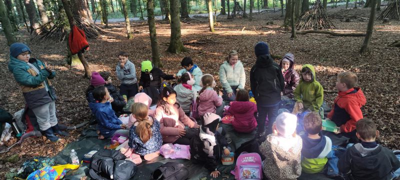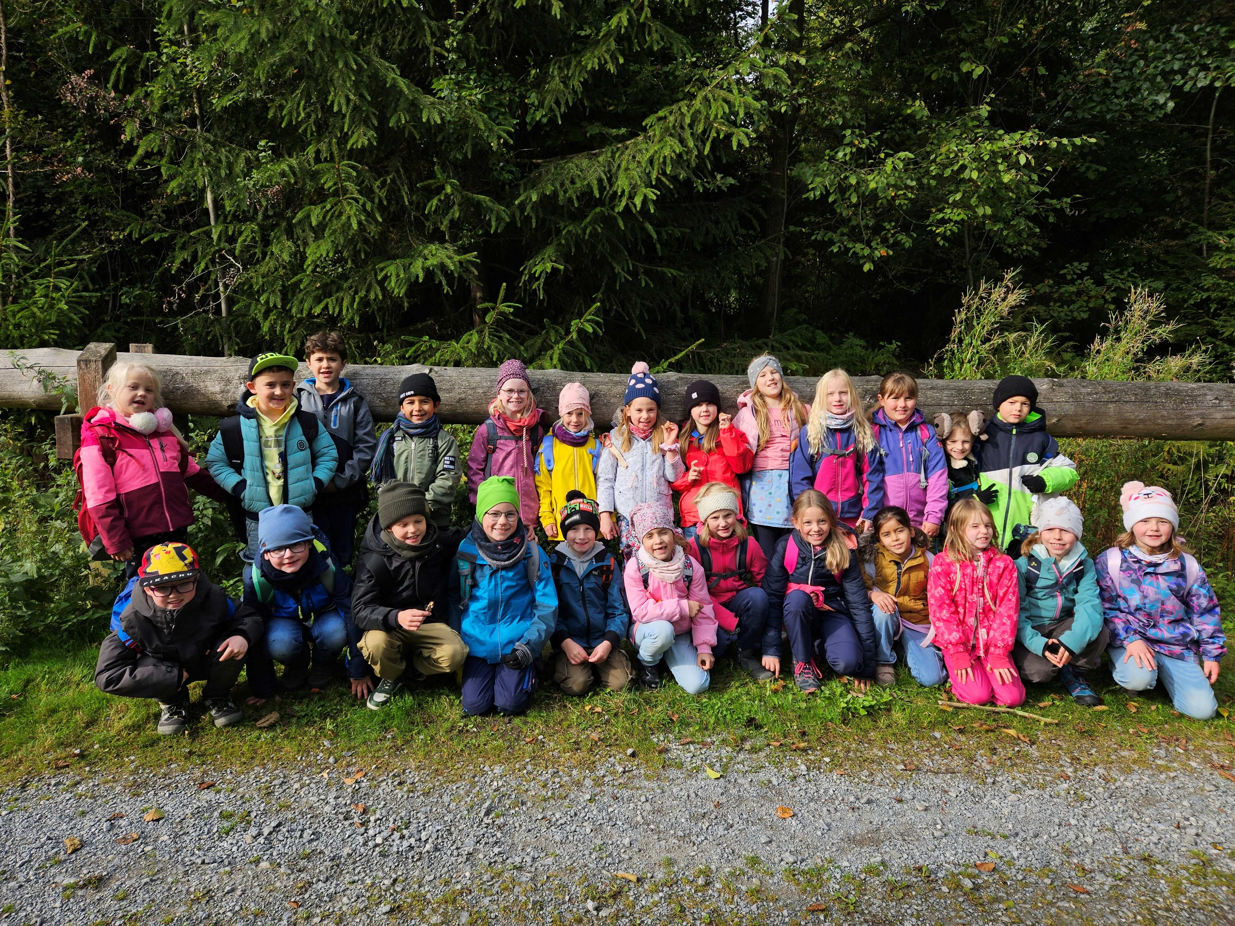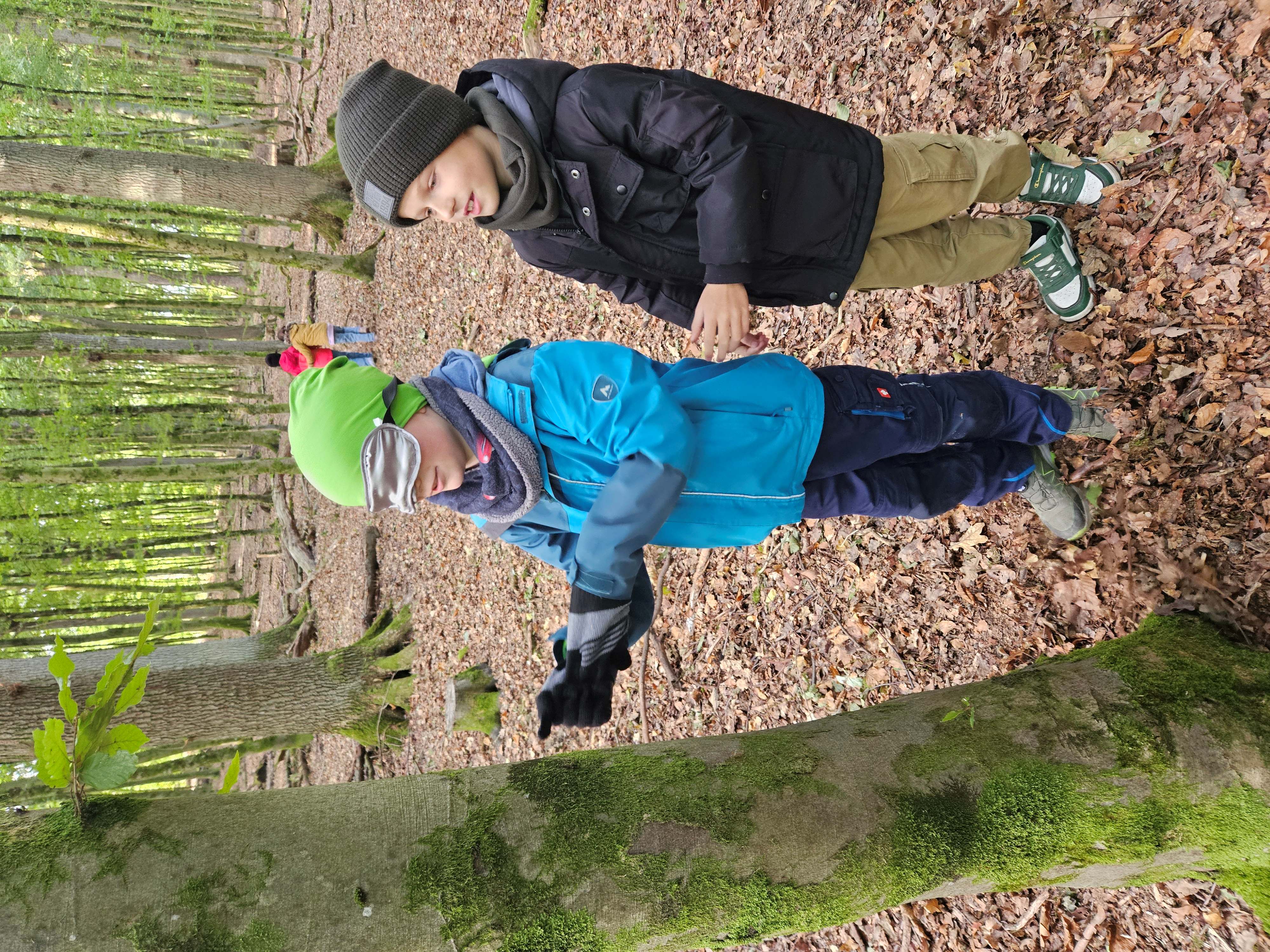 Am 23. u. 24.09.2025 ging es für die Rüthener 2. Klassen auf Erkundungstour in den Laubmischwald angrenzend an das Bibertal. Zuerst wanderten wir von der Schule bis zum Waldschiff, dort trafen wir Frau Hentschel vom Liz, die uns in den Wald führte. Nach einem kleinen Frühstück lernten wir, wie sich Eichhörnchen auf den Winter vorbereiten, wie sich verschiedene Waldfunde anfühlen, wie sich Bäume auch ohne Sehen unterscheiden lassen und fertigten Baumsteckbriefe an.