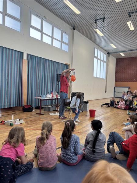 Am Dienstag, den 21. April waren die Physikanten mit ihrer tollen Wissensshow bei uns an der Schule zu Gast. Es wurden tolle Experimente zu den vier Elementen präsentiert. Die Kinder waren fasziniert und begeistert. Danke an den Förderverein, der uns dieses tolle Erlebnis ermöglicht hat!