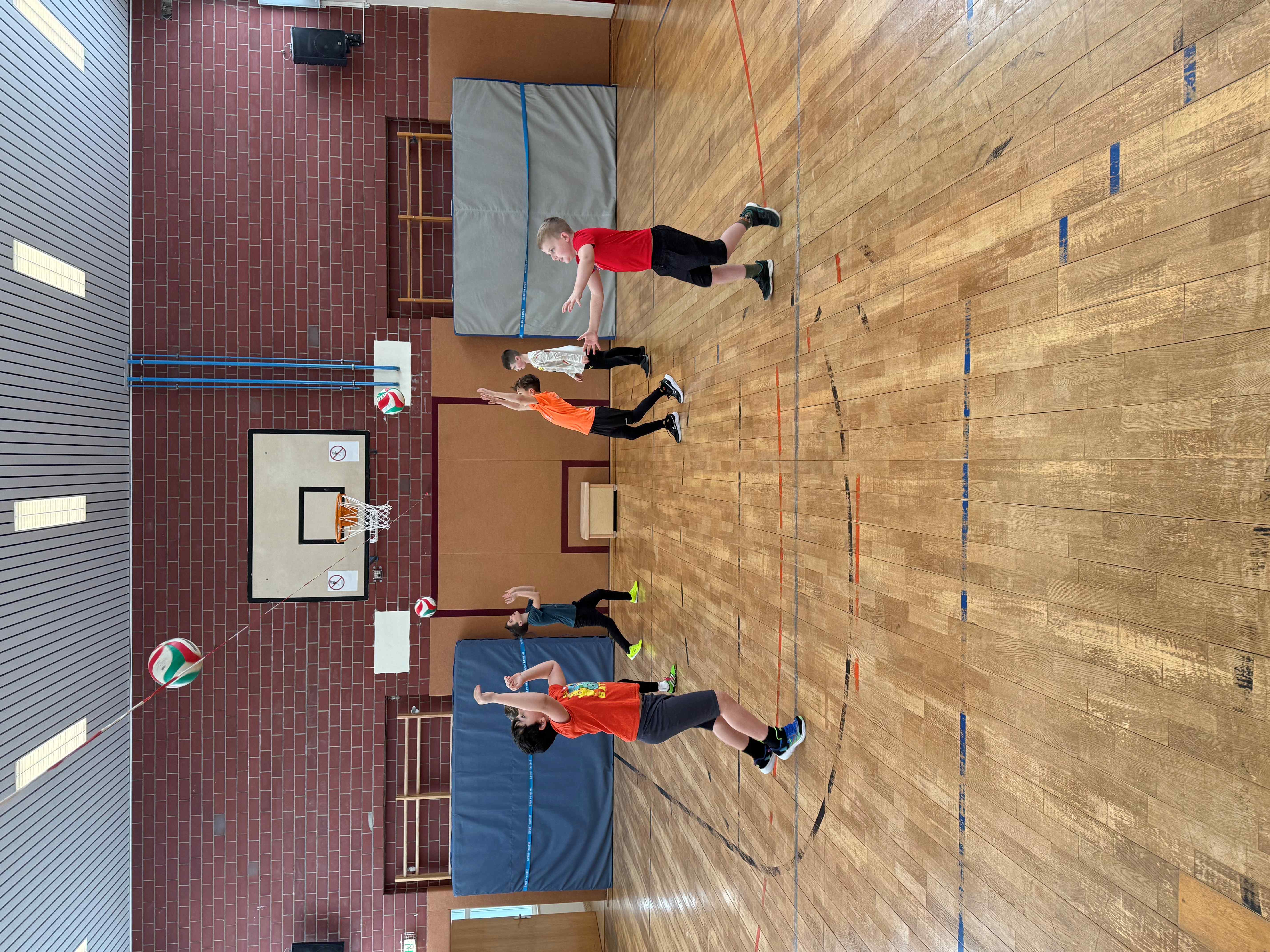 Wie bereits seit vielen Jahren üblich, bekamen alle Klassen des 4. Jahrgangs Besuch von Bernd Purzner, der als Vertreter des WVV (Westdeutschen Volleyball Verbandes) ein Schnuppertraining im Rahmen der Kooperation zwischen Schule, Verein und Verband anbot. Hier wurde den Kindern eine ideale Möglichkeit angeboten, erste Erfahrungen mit dieser vielseitigen Sportart zu sammeln. Im Mittelpunkt steht dabei vor allem der Spaß an Bewegung, das gemeinsame Spielen sowie das Kennenlernen grundlegender Techniken. Toll auch, dass Vertreter des TSV zur Unterstützung dabei waren.